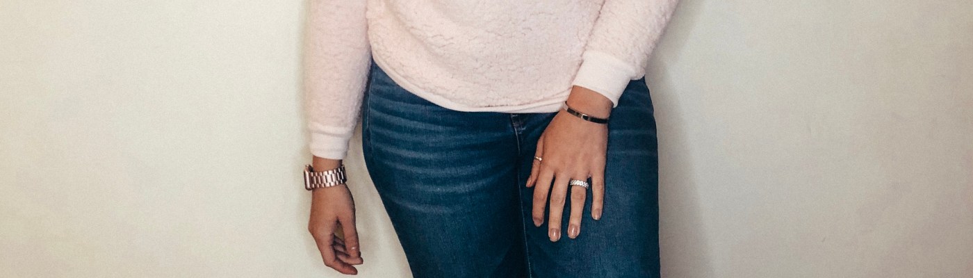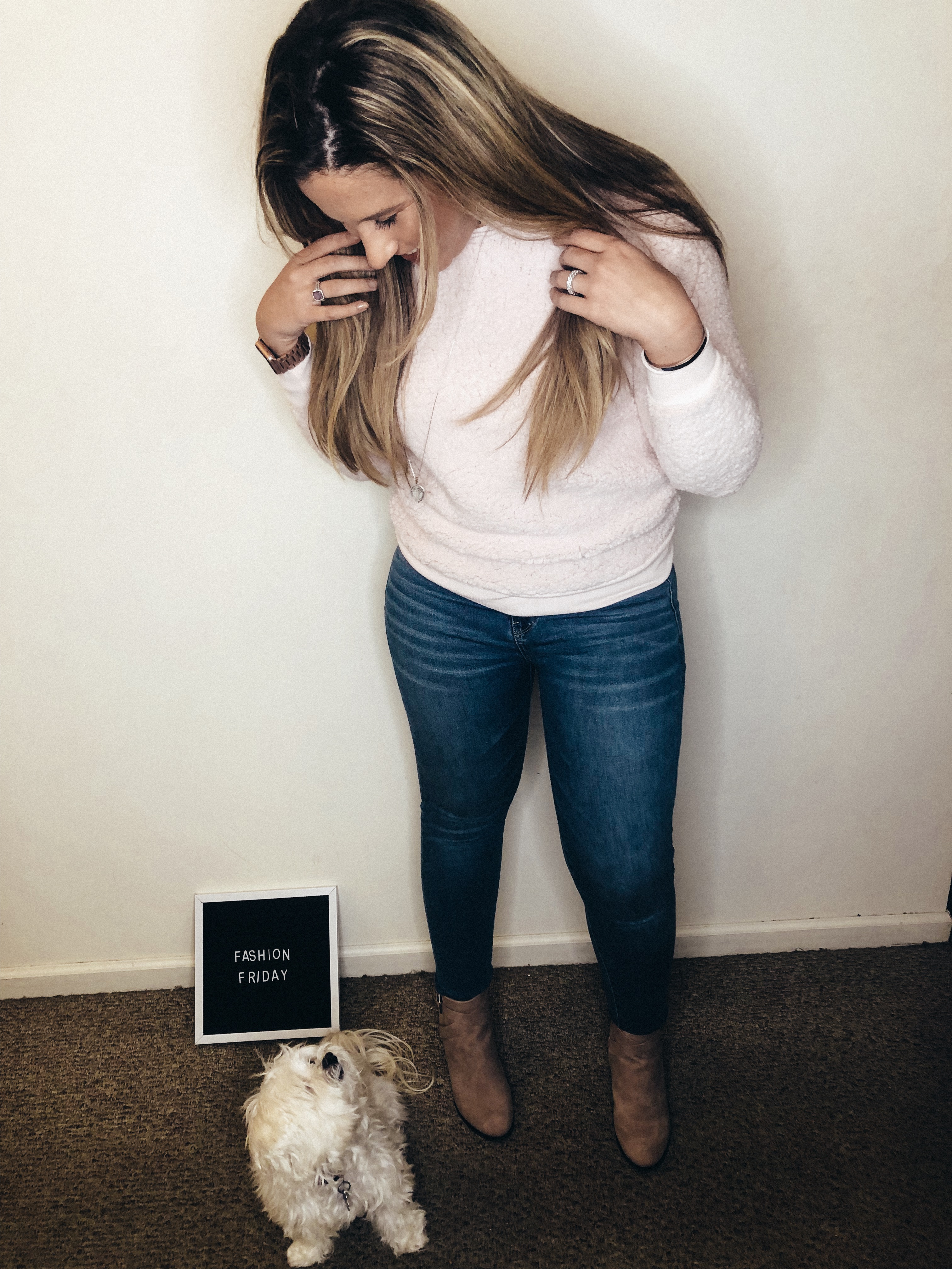 First, I want to talk about this top! I actually got it at 5 Below. It’s a workout top, but once I felt the material I knew I needed it. It sort of reminds me of the teddy vest I had in my first Fashion Friday post. It is just SO warm! Plus I really like this pink color. It’s like a baby pink hue.