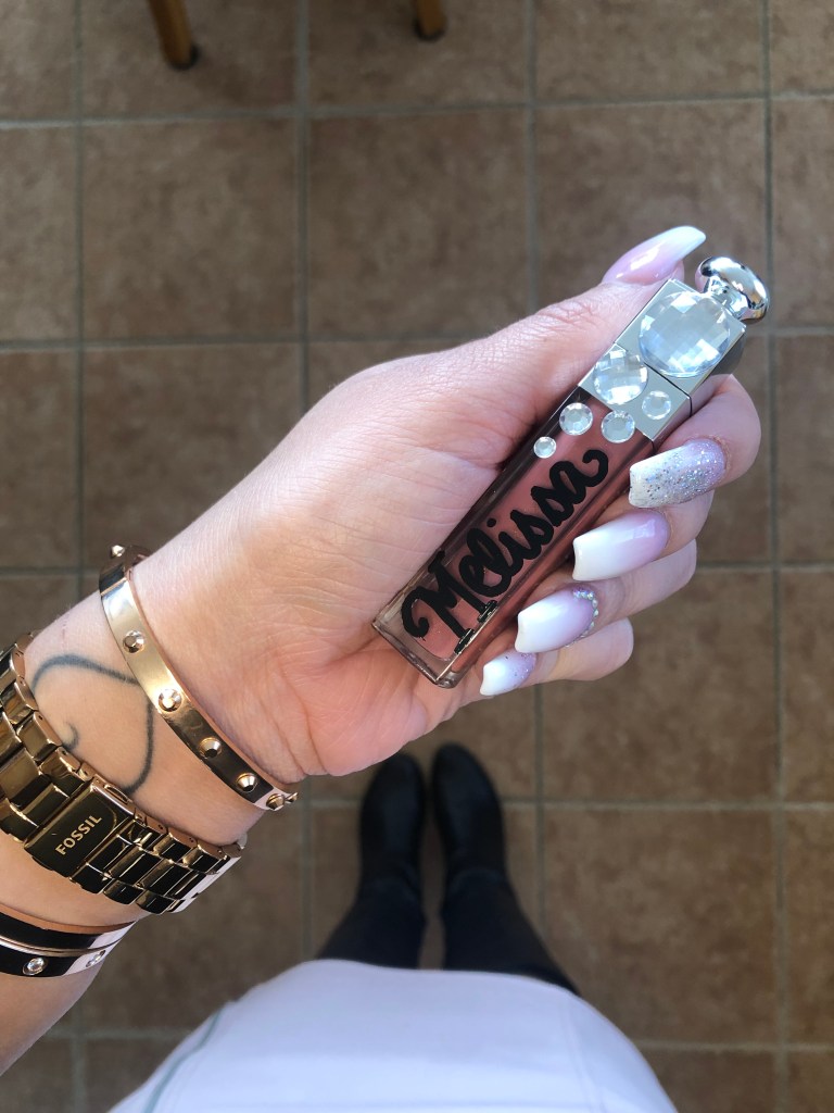 Now let’s talk about other details you all are probably looking at. The packaging! WELL, no, that is no how Dior packages their lipglosses, although, how cool would that be?! Stacie had it personalized for me and I am literally so obsessed! I never had any makeup say “Melissa” on it! and the diamonds!? HOW CUTE ARE THEY?! I know I am going to be going through this lippie fast because I am a huge fan, but I am 100% ALWAYS keeping the packaging because it is just so darn cute! I’ll put it in the background for videos, or figure out a way to use it another way! LOL If there is a will, there is a way! Trust me.